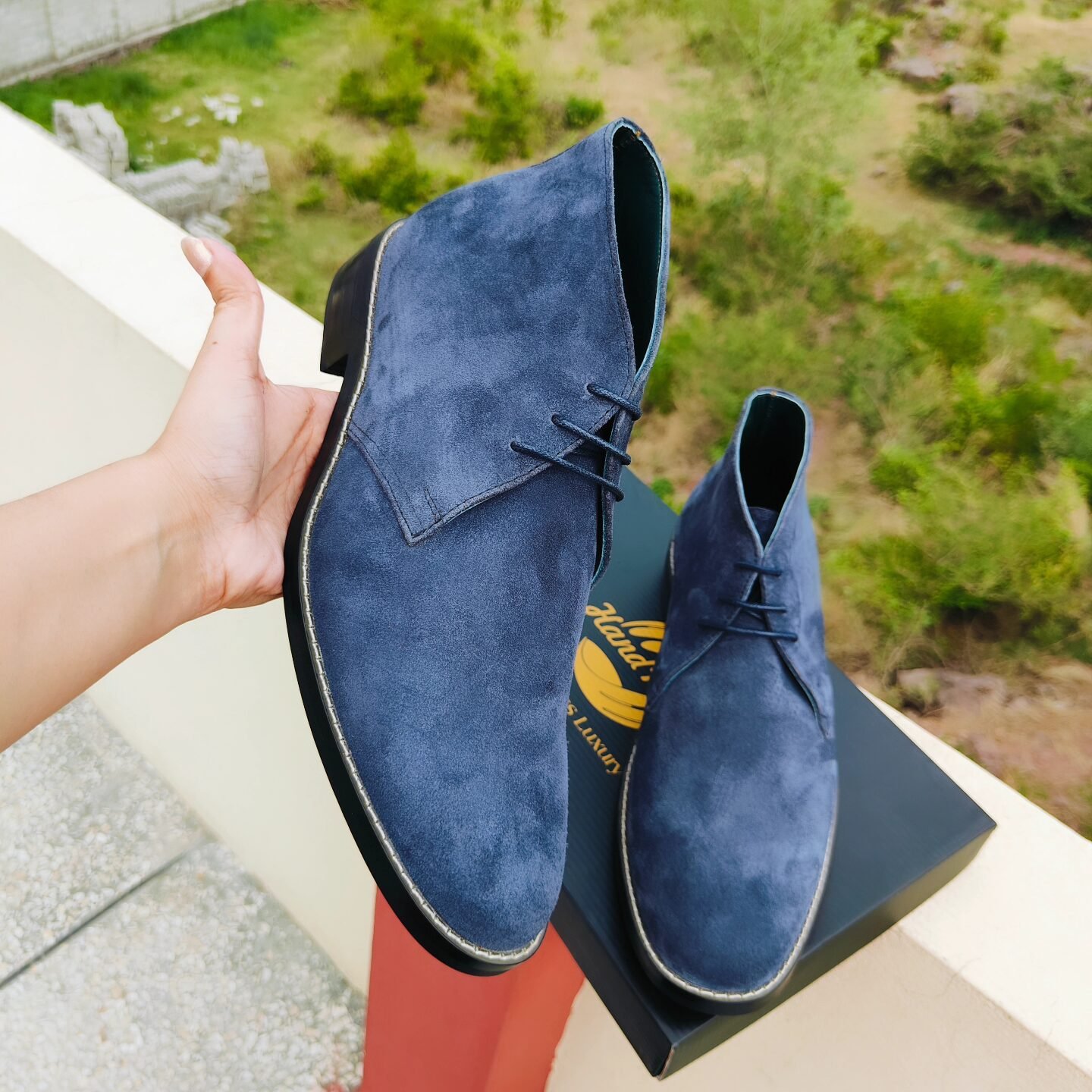 Elevate your everyday style with our handcrafted Ankle Boots in premium bluish grey suede. Designed for comfort and built to last, these boots feature a sleek silhouette and refined texture, making them a versatile choice for casual and semi-formal outfits. The soft suede upper paired with expert craftsmanship ensures durability, breathability, and timeless appeal for the modern man.