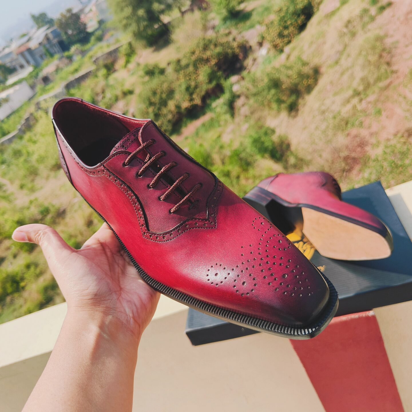 Step into bold sophistication with our handcrafted Burgundy Oxfords. Made from premium leather, these classic shoes feature a rich burgundy finish that adds a refined touch to your formal wardrobe. Perfect for weddings, business meetings, or upscale evenings, their timeless silhouette, durable build, and artisanal craftsmanship ensure comfort and longevity with every step.