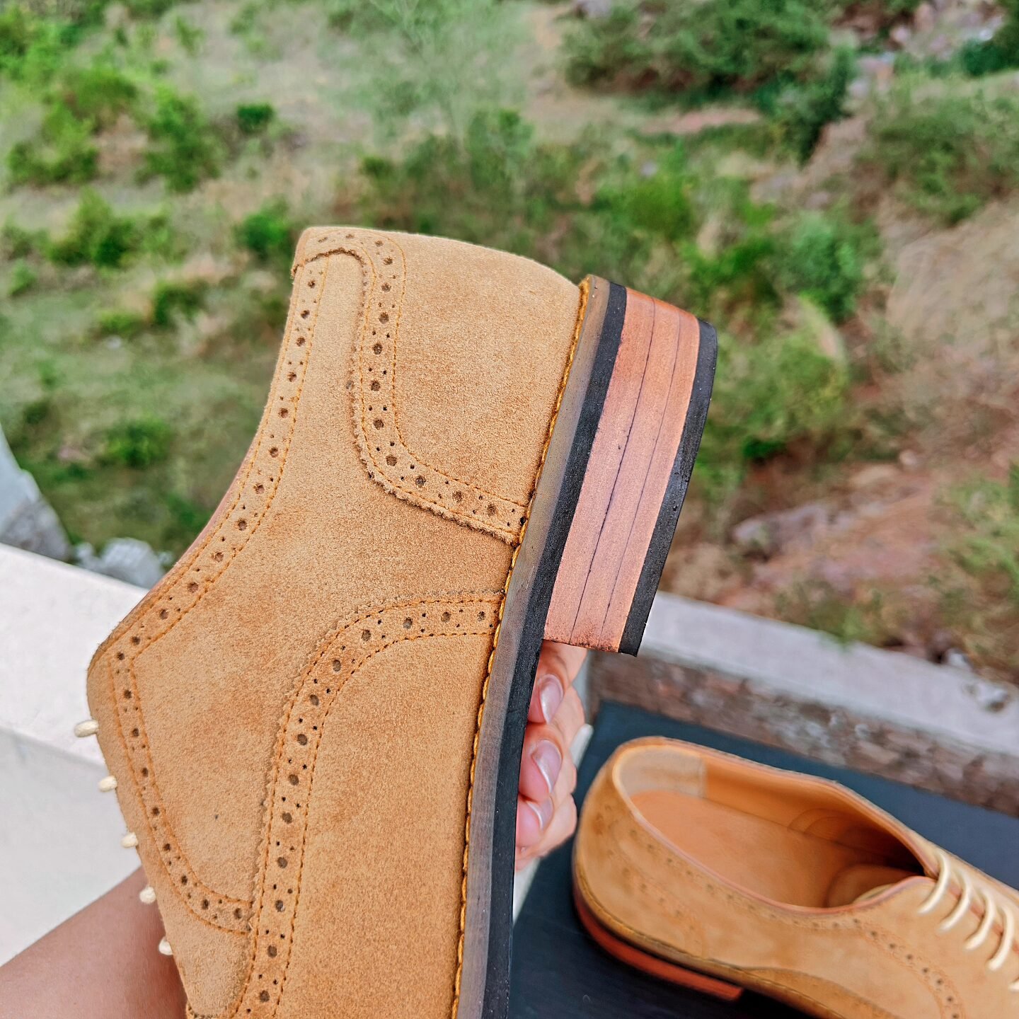 Camel Suede | Suede Oxfords | Handmade | Single Leather Sole | Double Leather Sole | Formal | Note: Each pair is handcrafted on demand with your preferred size and color. If your selected size is not in stock, your custom order will be made and delivered within 14 working days.