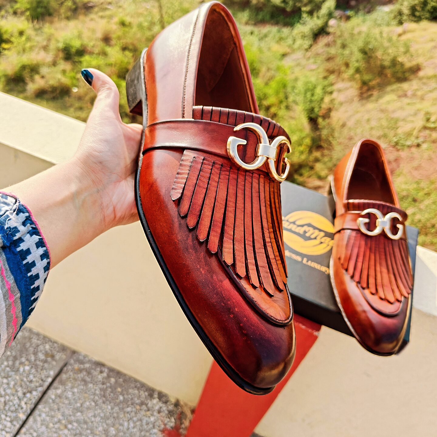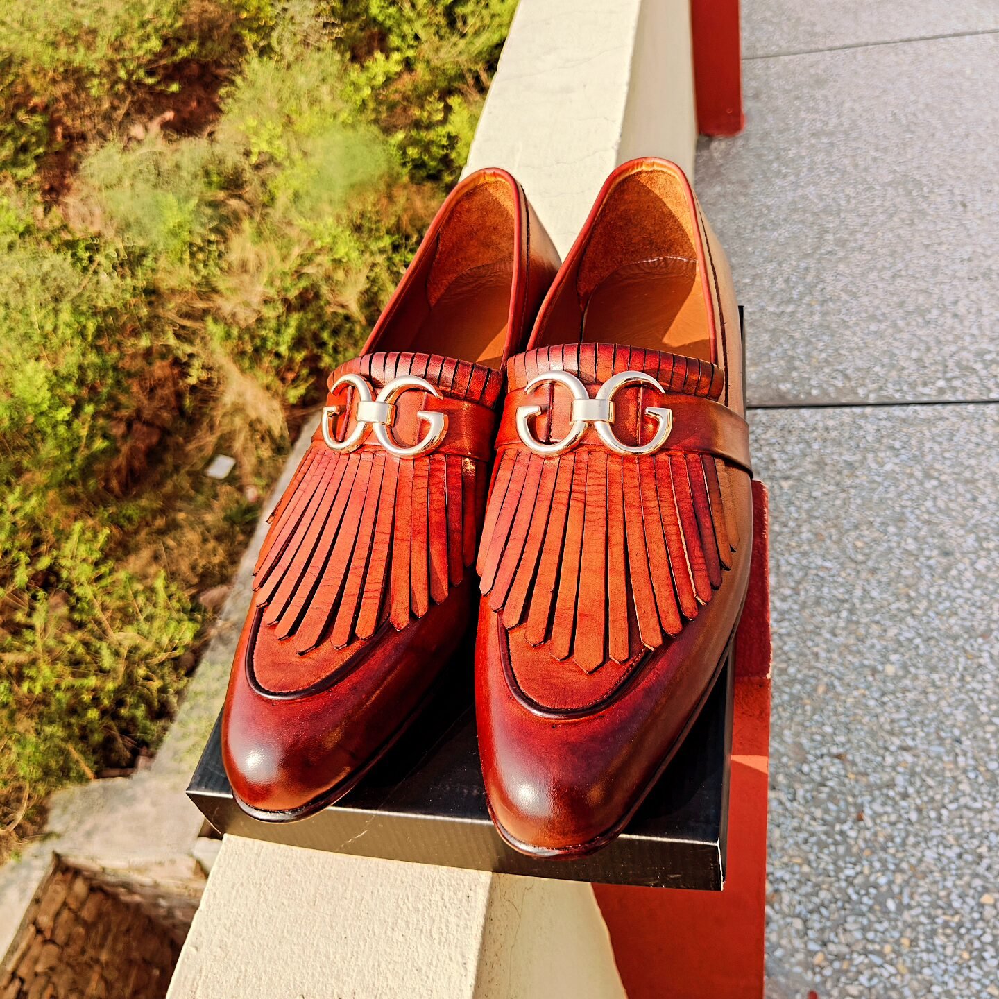 Add a touch of Italian-inspired flair to your wardrobe with our Gucci Buckle Fringe Loafers (Model: LF-GBFL-013). These premium, two-tone handmade loafers feature a classic fringe design accented by a bold metallic buckle — delivering timeless elegance with a modern twist.