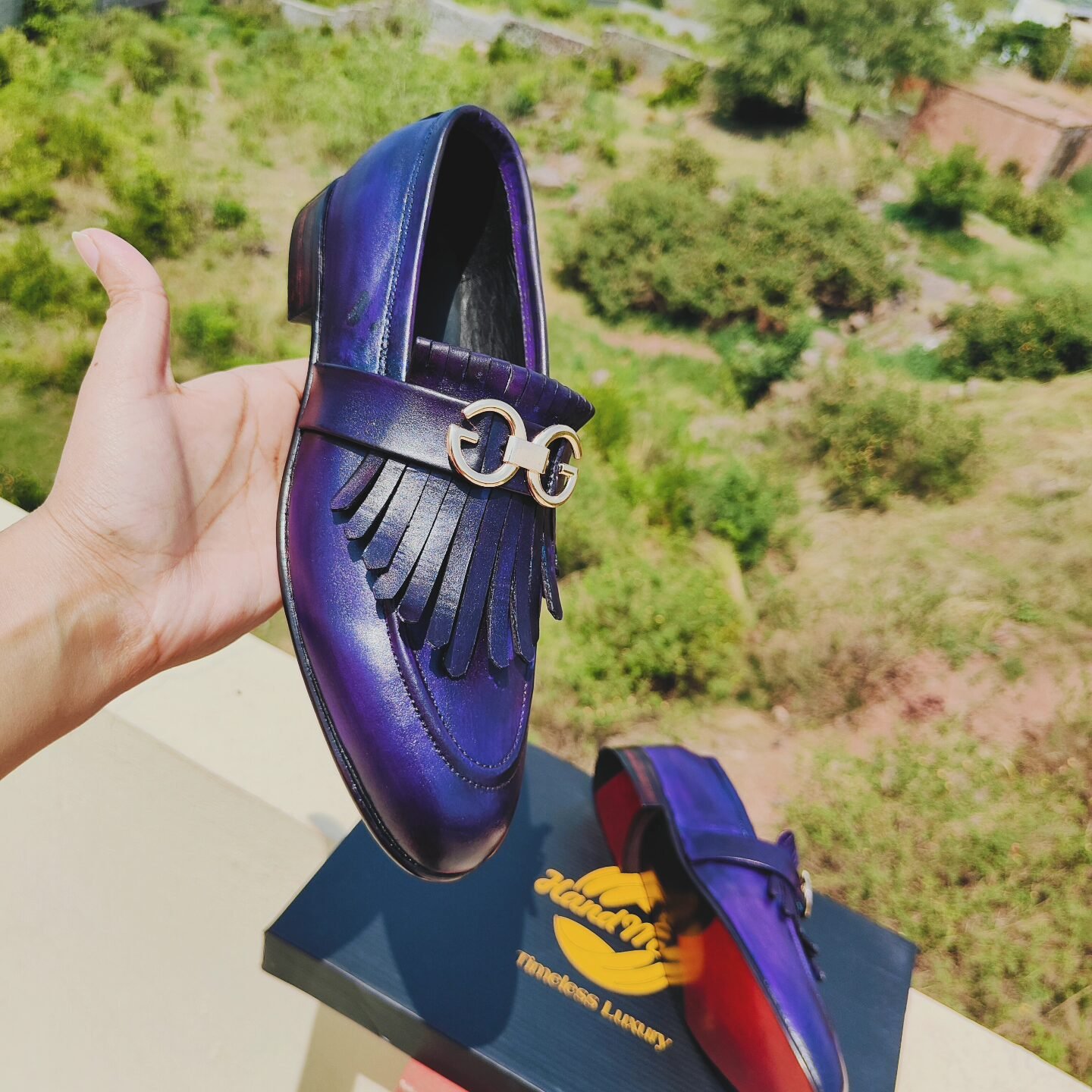 Gucci Buckle | Indigo | Leather Loafers | Handmade | Formal | Single Leather Sole | Double Leather Sole | Note: Each pair is handcrafted on demand with your preferred size and color. If your selected size is not in stock, your custom order will be made and delivered within 14 working days.