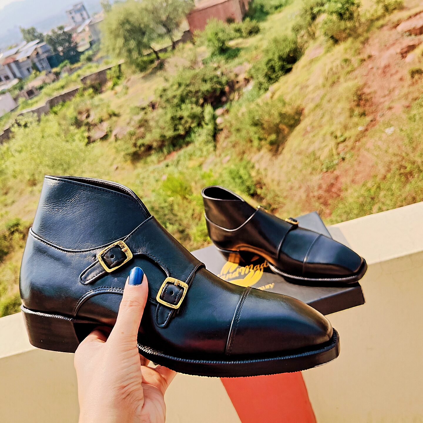 Step into refined elegance with our Double Buckle Monkstraps (MK-DBM-002) — a perfect fusion of sophistication and craftsmanship. Expertly handcrafted, these monkstrap shoes feature a sleek, polished leather finish and dual buckle design for a secure and stylish fit. Ideal for formal and semi-formal wear, they offer comfort, durability, and timeless European charm, making them a versatile choice for the modern gentleman.