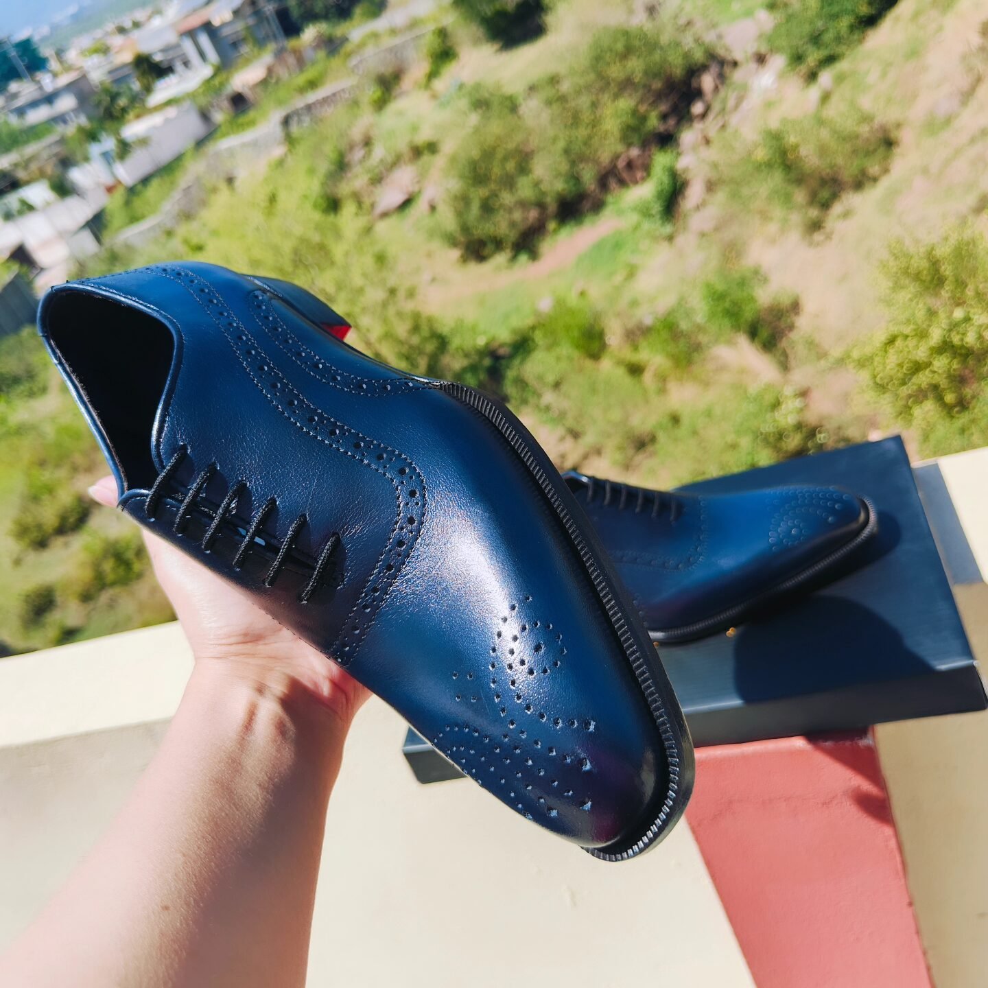 Hex Blue | Handmade | Leather Oxfords | Single Sole | Double Sole | Classic Design | Modern Shade | Note: Each pair is handcrafted on demand with your preferred size and color. If your selected size is not in stock, your custom order will be made and delivered within 14 working days.