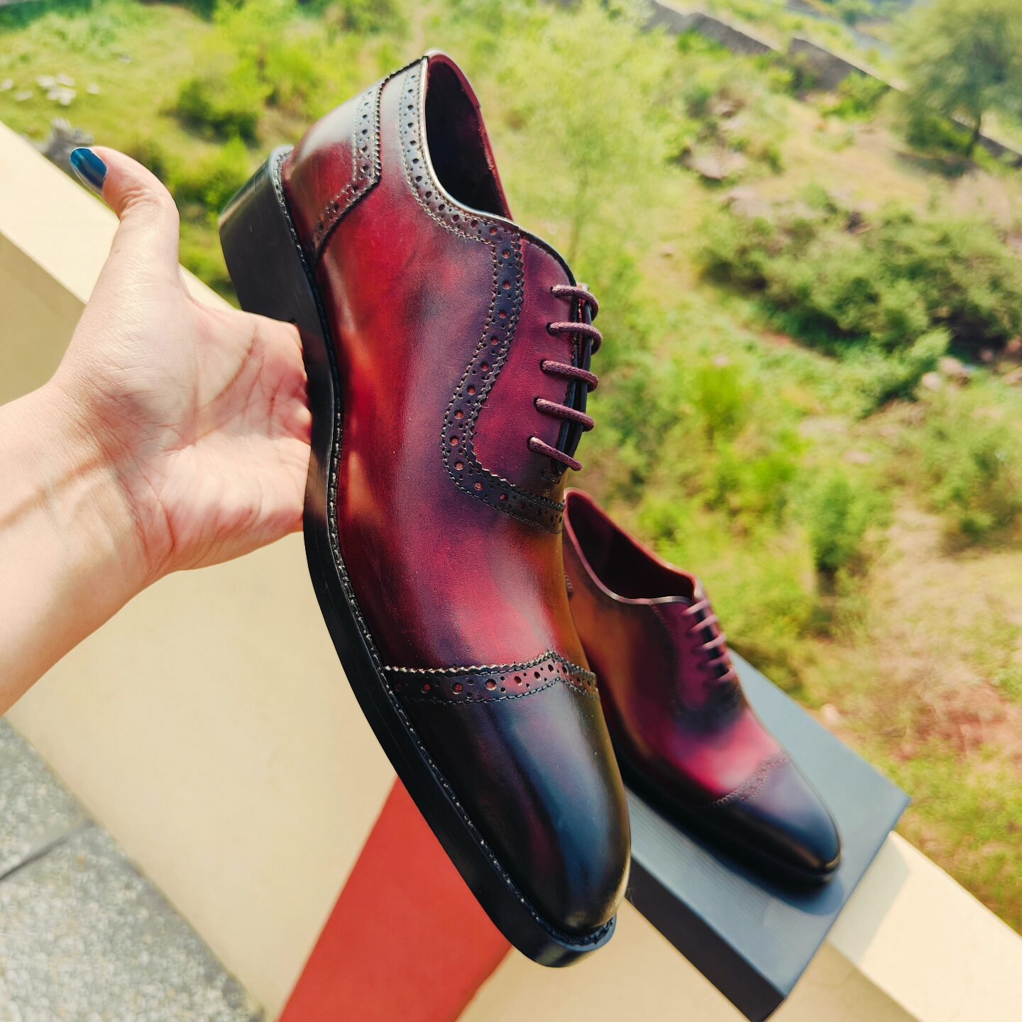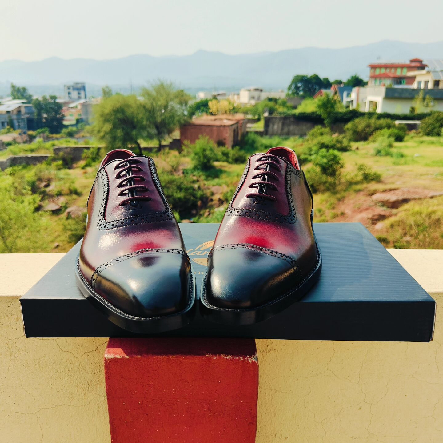 Elegant | Burgundy | Two Tone | Leather | Oxfords | Handmade | Classic | Premium Finish | Note: Each pair is handcrafted on demand with your preferred size and color. If your selected size is not in stock, your custom order will be made and delivered within 14 working days.